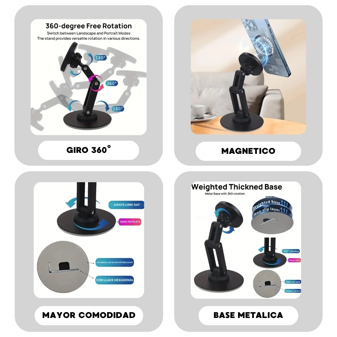 Haz tu día más cómodo con este soporte giratorio 360°, pensado para ofrecerte versatilidad, practicidad y estilo en todo momento.